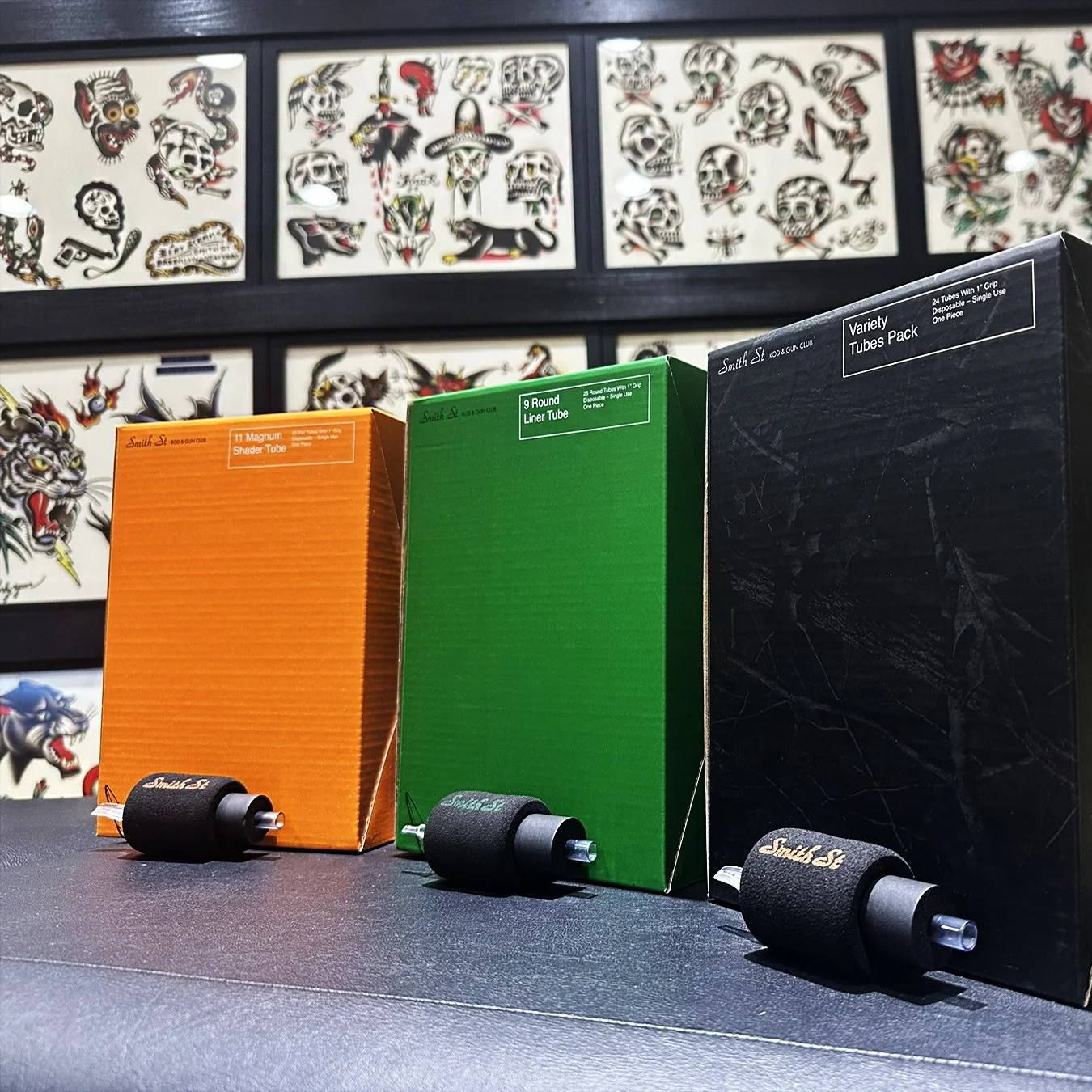 The new Smith Street Rod & Gun Club Disposable Tattoo Tubes, created in collaboration with Lucky Supply, aren't just another supply option—they're a better way to tattoo. Each tube is a complete setup, blister-packed with a foam grip cover, grip spacer, and a 1” disposable tube. No wrap. No extra steps. Just grab and go.